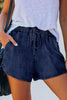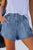 •High waist denim short with elastic waistband for fit and the adjustable waist drawstring offers added comfort