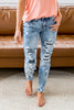 ?With the distressed design, wearing the jeans will perfect to highlight your chic style