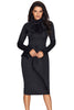 •Long sleeve design, bodycon fit, cut at midi length