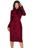 Burgundy Asymmetric Peplum Style Pussy Bow Dress