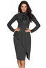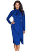 This new arrival Asymmetric Peplum Style Pussy Bow Dress offers elegance and highly feminine frames with a contemporary edge perfectly in such a midi dress. Carefully made in China with quality fabric, it features a pussy bow fastening at the mock neck, long sleeves, asymmetric ruffle layer cover the waistline to the hemline and a back zipper closure.
