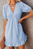 Home › Dress › Checkered Pattern Puff Sleeve Babydoll Dress