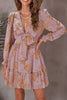 Deep V Neck Lantern Sleeve Knotted Tiered Mini Dress