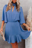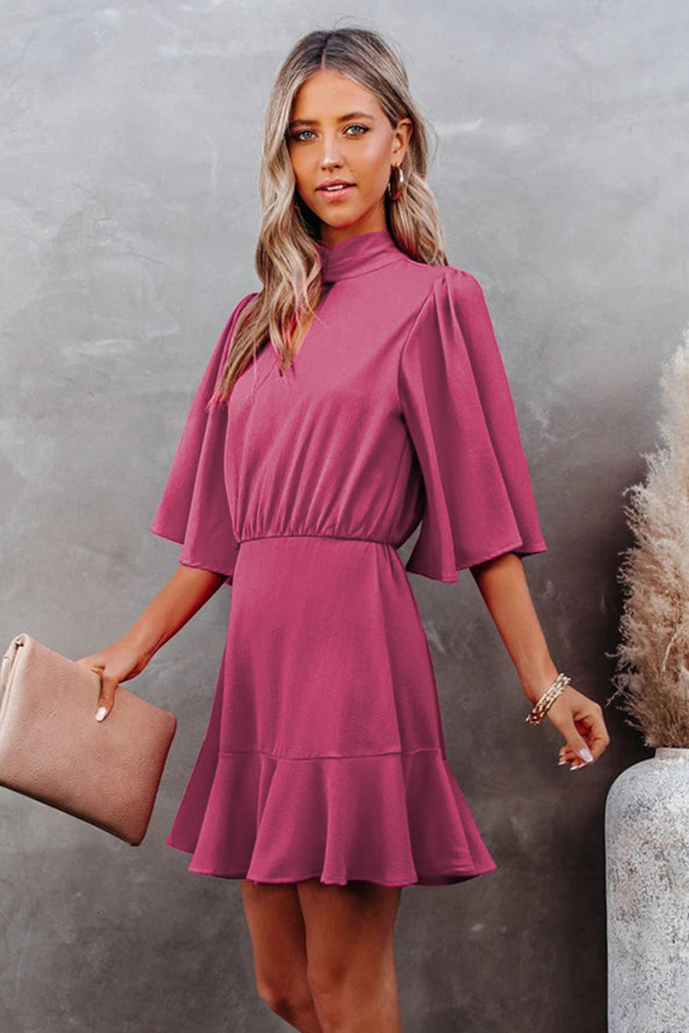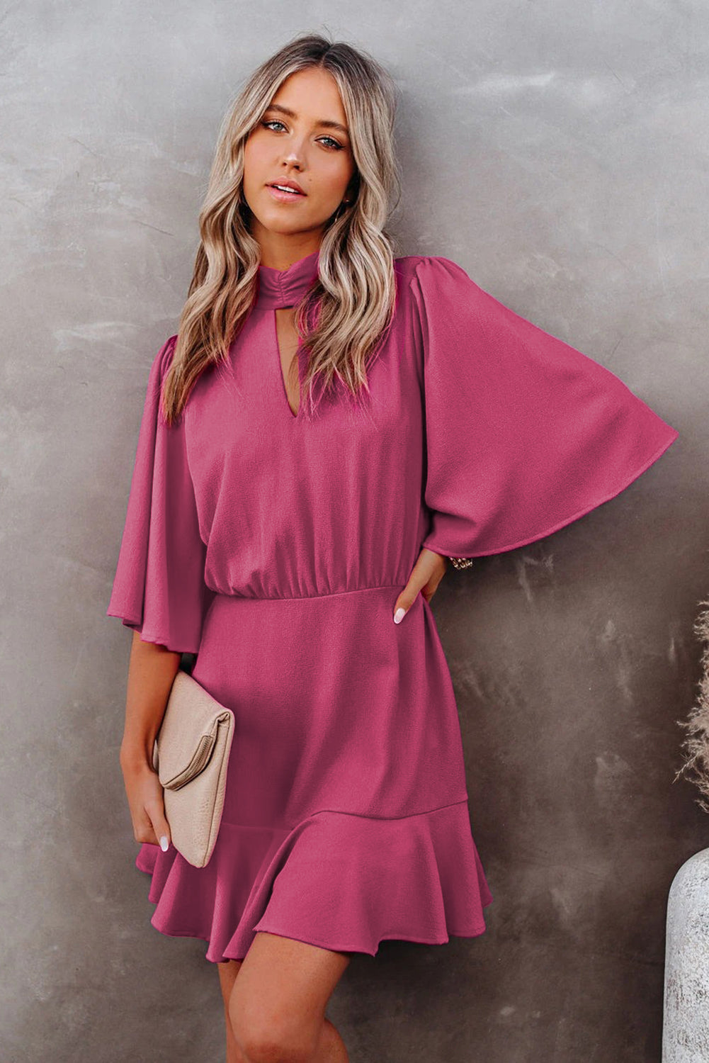 ?Our Fashion Forward Keyhole Dress comes in a solid color textured composure with a high neckline and a front keyhole