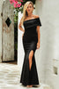Off The Shoulder One Sleeve Slit Maxi Party Prom Dress