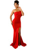 •Curvaceous contour with side slit and finished with a back zipper closure