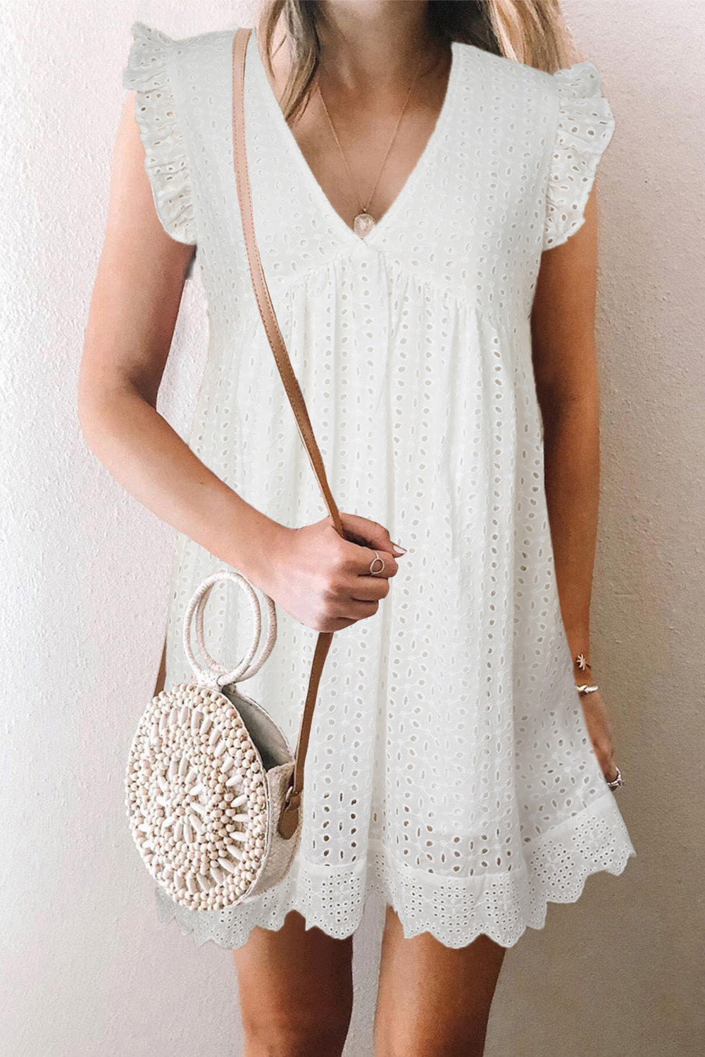 Home › Dress › V Neck Ruffled Sleeves Perforating Babydoll Dress
