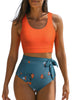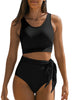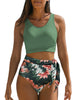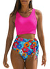 Fashion Bikini 2 Pieces Set Tankini Top With High Waist Bottoms