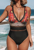 Tropical Leaf Print High Waisted Bikini Swimsuit
