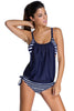 Home › Swimwear › Grey Layered-Style Striped Tankini with Triangular Briefs