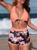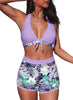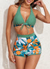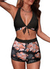 Halter V Neck Floral Print 2 Pieces Bikinis Sets