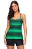 Strappy Hollow-out Back Tankini in plus size standard has an effective tummy flatten magic. The low neckline cut and bust parting line boast a plumpy breast, strappy hollow-out back and double slit of the tank top. This swim top has no underwire but removable bra paddings insert. Matching with boyshort. The tankinis are extremely prevailing to update your beach look and fill colors to the summer.