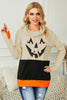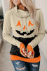 Cowl Neck Pumpkin Print Color Block Halloween Sweatshirt
