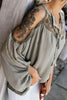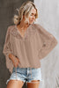 •The neckline ties on this blouse that has a gauzy feel and flowy wear