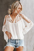 •Peasant-style silhouette with lace insets through the neckline and sleeve tops