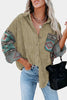 Home › Tops › Khaki Aztec Pattern Sleeve Pocketed Corduroy Shirt