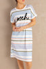 ?Round neck, short sleeves, loose fit style, straight hemline finished