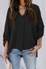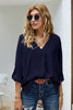 V Neck 3/4 Sleeve High Low Hem Shirt