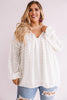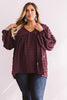Wine Red V Neck Lantern Sleeve Swiss Dot Plus Size Blouse