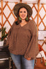 Home › Tops › Wine Red V Neck Lantern Sleeve Swiss Dot Plus Size Blouse