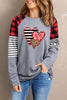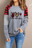 ?The raglan sleeve is made up of red plaid, stripe and solid color