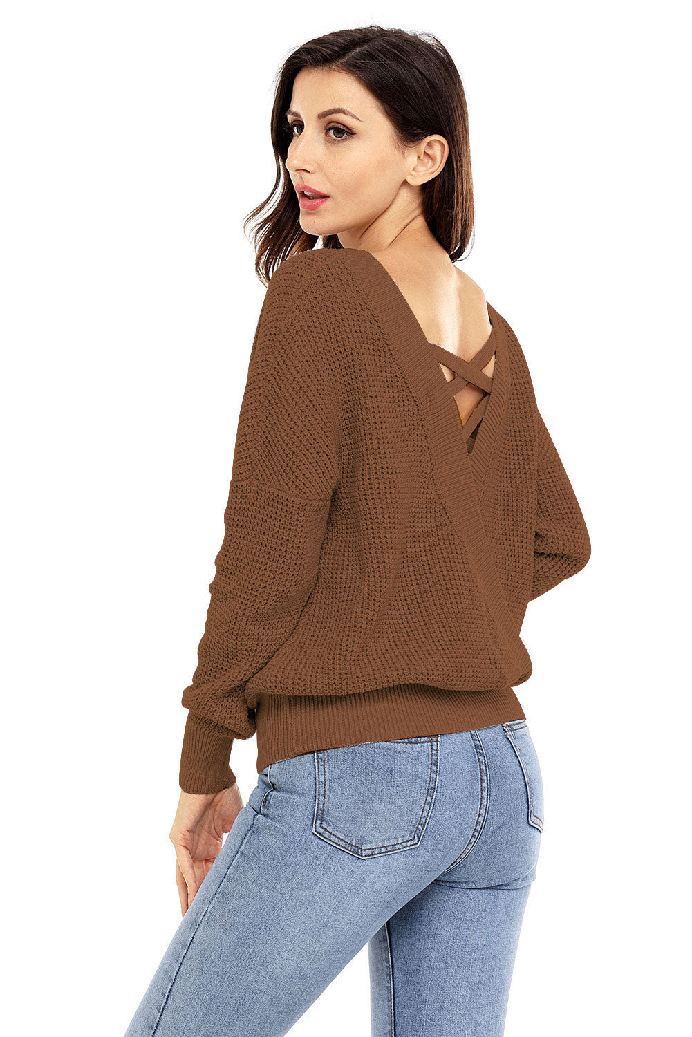 We are obsessing over this chic knit sweater top with deep v hollow-out and crisscross back! The perfect way to transition this trend into the colder months! Wholesale Cross Back Hollow-out Sweater is lightweight, warm and comfortable to wear while you?¡¥re looking fashionable in style. Both the front and back can wear.