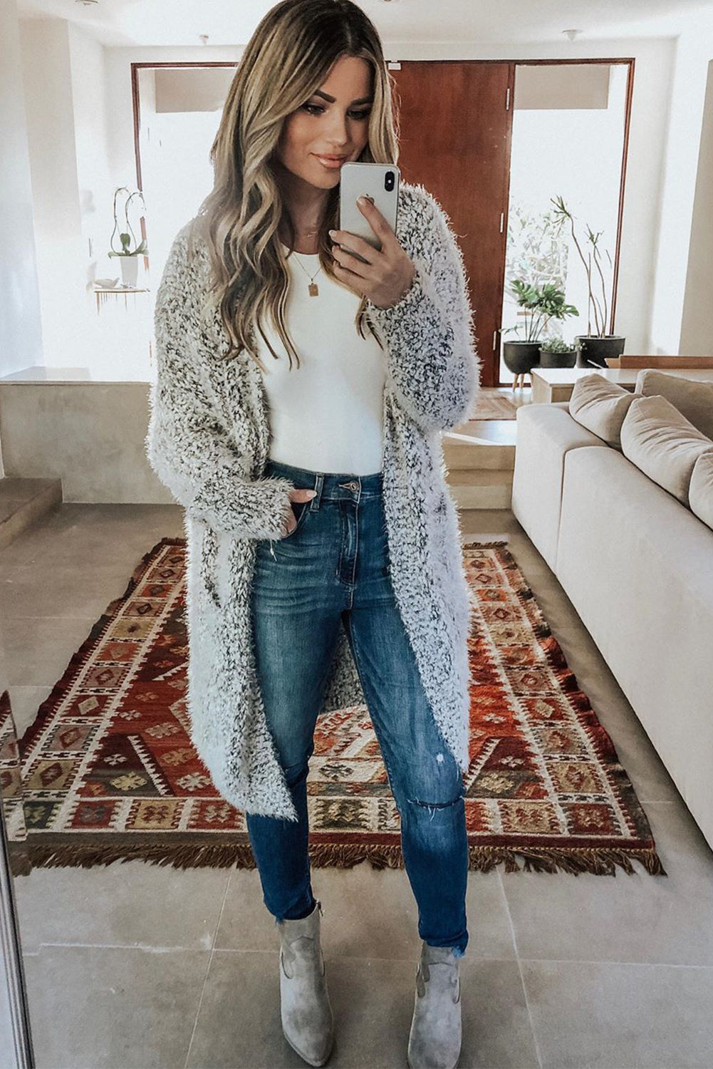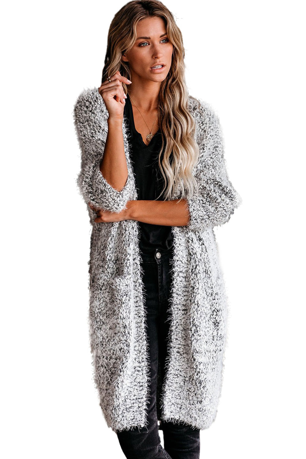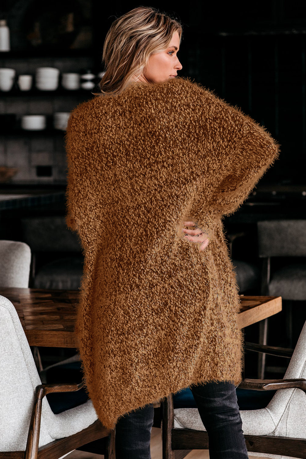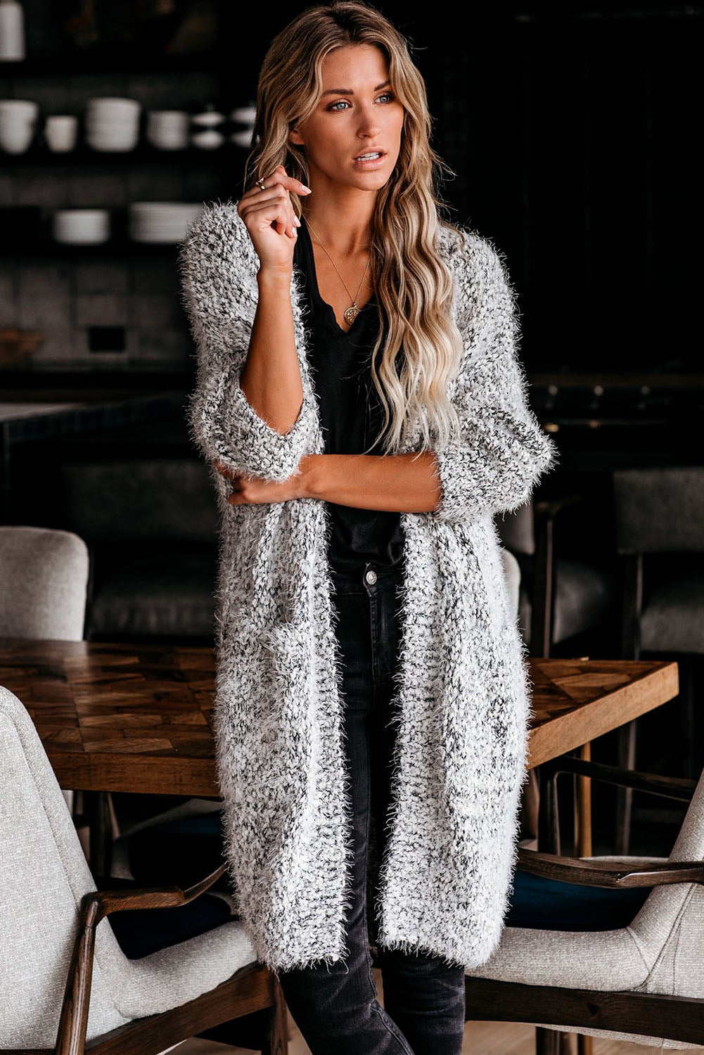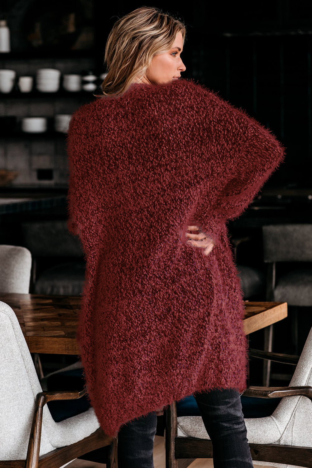 •Crafted in a chunky knit fabrication with an open front and long sleeves