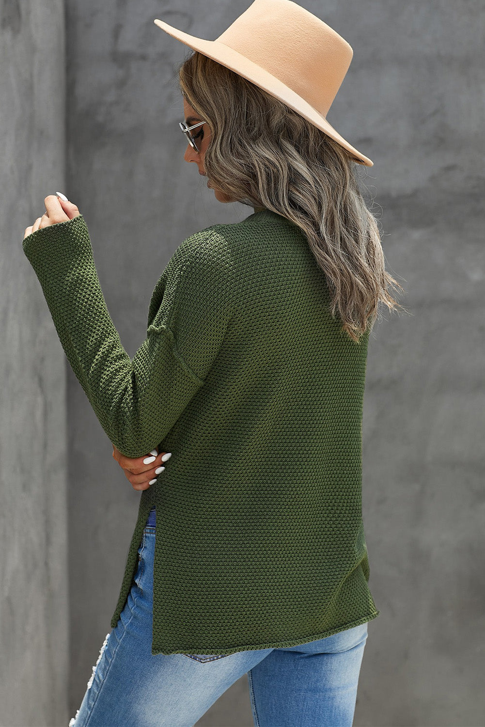 ?Long sleeve sweater features side split design, stylish and eye-catching